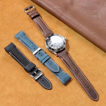 • Smooth Leather Watch Strap Vintage Oil-Tanned Strap for 18mm 20mm 22mm Watches Luxury Genuine Leather Replacement
